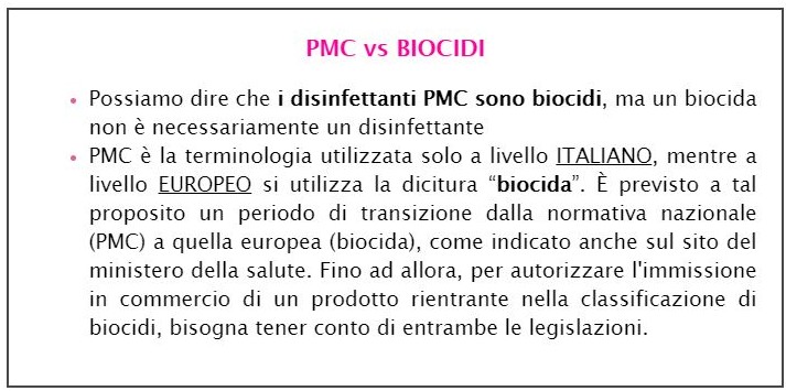 ___ *Si veda tal proposito la parte sul sito dedicata a biocidi e presidi medico-chirurgici a questo link