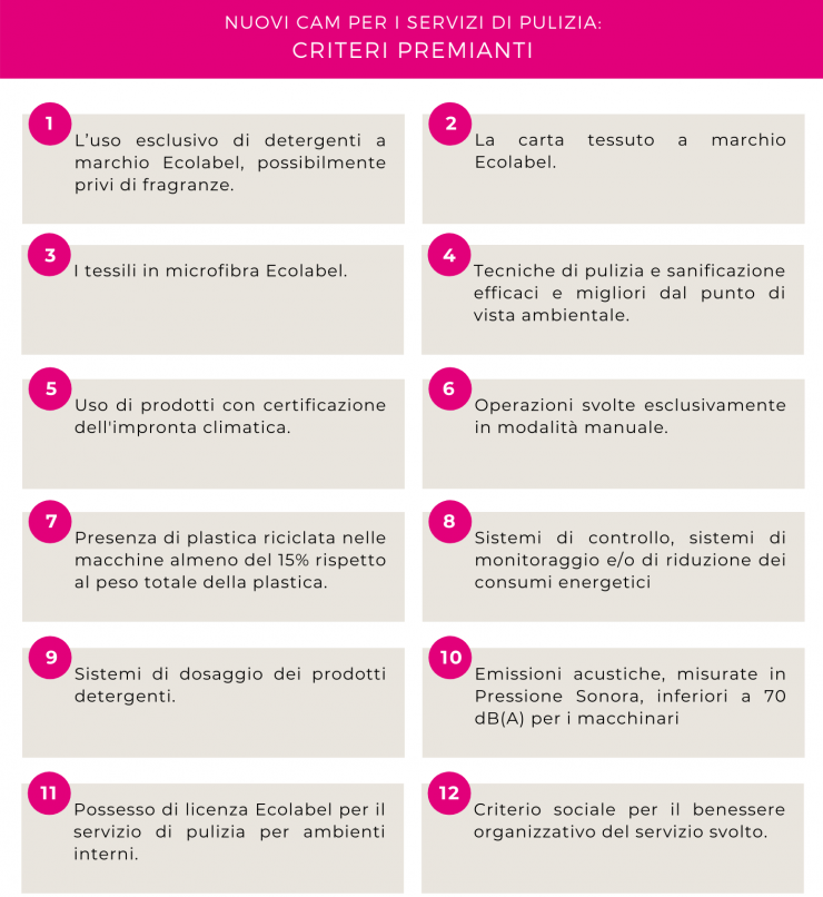 Sia in ambito civile che in quello sanitario, sono assegnati dei punteggi a chi si impegna a rispettare uno o più dei seguenti requisiti ambientali:
