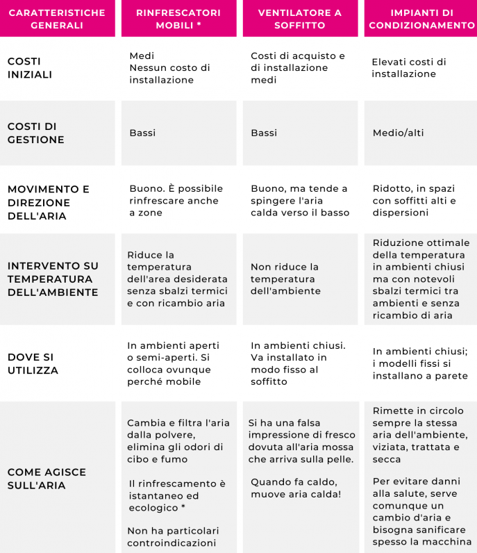 ◆ I SISTEMI PER RINFRESCARE: UN CONFRONTO