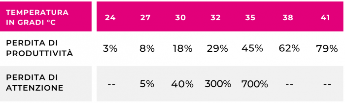 Il caldo non solo costituisce un rischio per il lavoratore, ma gli studi dimostrano che può influenzare anche l'attenzione e la produttività dei lavoratori: