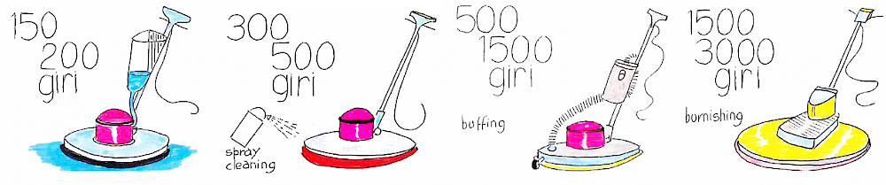 AMBIENTI: prevalentemente interni e superfici di dimensioni limitate ATTIVITÀ: pulizie di manutenzione e di fondo ambienti ridotti; pulizie a secco (spraycleaning), lucidatura (burnishing), cristallizzazione, diamantatura (marmo e granito), levigatura etc. IDEALE PER: operazioni di pulizia di manutenzione e di fondo in ambienti generalmente di limitate dimensioni (50/100 mq) e per trattamenti specifici
