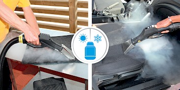 Nella pulizia invece dei sedili consigliamo l'utilizzo del vapore secco a 180°, che permette di neutralizzare cattivi odori, combattere batteri, acari virus rimuovere macchie ed aloni e sanificare l’abitacolo in maniera del tutto naturale. La pulizia a vapore permette un uso limitato d’acqua il cui risparmio è stimato intorno al 90% in meno rispetto ai sistemi di pulizia tradizionali.